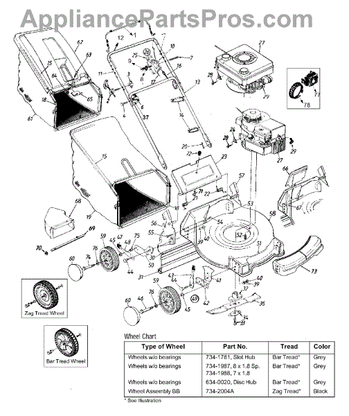 Lawnmowers and other lawn and garden equipment need to be mobile, and that means they need wheels. There are many warning signs that it is time to replace the wheel. For example, if a self-propelling machine struggles to move easily or if a push mower is not operating as smoothly as in the past, it may be that the wheel assembly has failed. The reasons for failures include the materials, the amount of weight put on the wheels, the amount of use, and the type of use. Changing a wheel is simple but requires the appropriate parts. It features a bar tread and roughly 8 in diameter. It should work with all self-propelled and manually operated mowers, as well as the machine and equipment types listed. This authentic OEM complete wheel replacement will work on chipper and shredder machines, edgers, and lawnmowers from the Craftsman, Bolens, and Yard Machines brands. It will also work with Ryobi, MTD, Huskee, and Yardman equipment. It will require the appropriate hardware, which is not included.