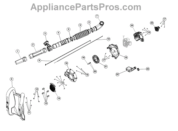 Upper tube for backpack leaf blowers. Connects blower housing to nozzle assembly. Replace if cracked, broken, or missing to restore proper airflow path.