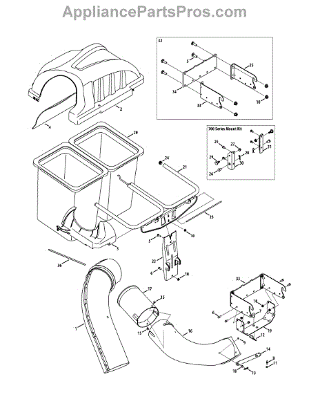 Upper chute for lawn tractor grass catcher attachment. Protects internal parts. Replace if cracked, broken, or damaged from impact or wear.