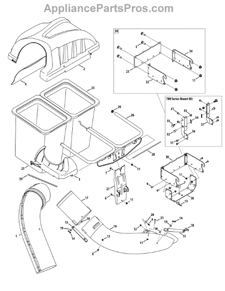 This replacement part is a bagger adapter. It is a genuine replacement part made by MTD. This bagger adapter is specifically found in lawnmowers and helps attach the bagger chute to the frame of the lawnmower. This allows for the leaves and other debris to be disposed of through the proper channels.A new bagger adapter might be needed if the current one is damaged or missing. If leaves and debris are escaping the bagging area, it is possible that the adapter is damaged and might need replacing. This should be a fairly easy repair and shouldn't require any uncommon tools. Be sure to reference any user manual provided for more information.This bagger adapter is a genuine OEM replacement part and is sourced directly from the manufacturer so that it fits. This part is sold individually.