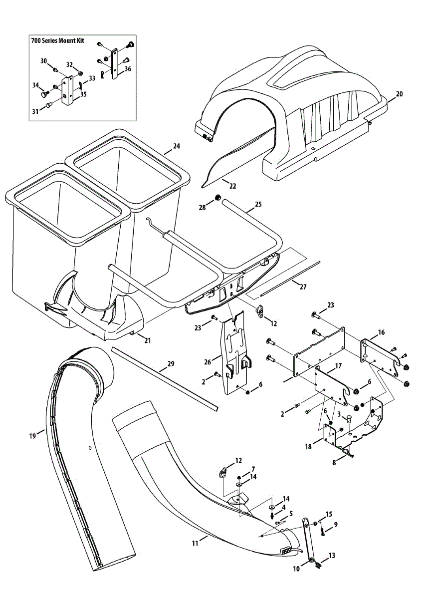 Grass clippings not reaching the bag? This upper chute assembly connects the lower chute to your bagging system. Replaces deteriorated plastic chutes.