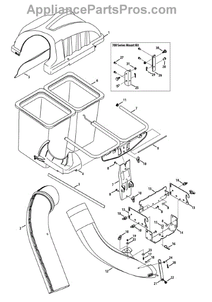 This is an upper chute assembly for a lawnmower.The grass clippings are forced up through the lower chute to the upper chute tube and pushed into the bagging system. The lower chute is a molded plastic part that may deteriorate over time due to exposure to the elements and having dirt and debris forced through it at high speed. If the trimmings are not making it to the bag, the upper chute should be inspected and replaced if necessary.The mower will work without the upper chute in place; however, the grass clippings and debris will not be bagged and will accumulate on the lawn. These piles of clippings can kill the grass underneath if not removed. If the upper chute breaks during use, replace it as soon as possible and run over the trimmed lawn a second time to pick up the clippings. This upper chute is a genuine OEM replacement part that is sourced from the manufacturer for use on lawnmowers and lawn tractors. This is a black molded plastic part that is sold individually. It is designed for use on lawn mowers and lawn tractors manufactured by Craftsman, MTD, and Troy-Bilt.