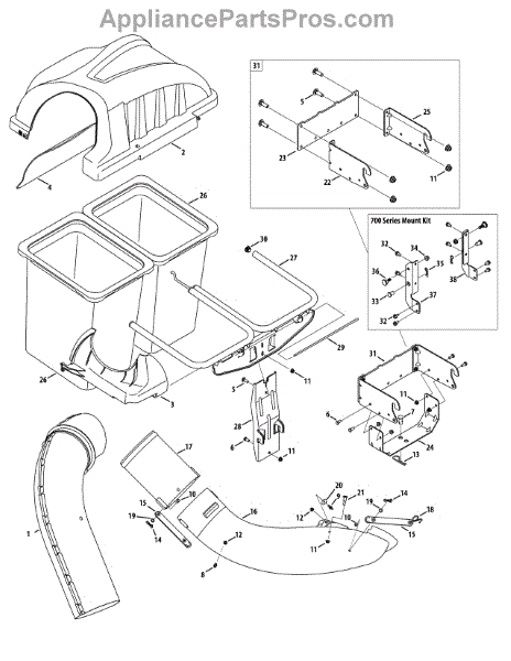 This replacement part is a bagger adapter. It is a genuine replacement part made by MTD. This bagger adapter is specifically found in lawnmowers and helps attach the bagger chute to the frame of the lawnmower. This allows for the leaves and other debris to be disposed of through the proper channels.A new bagger adapter might be needed if the current one is damaged or missing. If leaves and debris are escaping the bagging area, it is possible that the adapter is damaged and might need replacing. This should be a fairly easy repair and shouldn't require any uncommon tools. Be sure to reference any user manual provided for more information.This bagger adapter is a genuine OEM replacement part and is sourced directly from the manufacturer so that it fits. This part is sold individually.