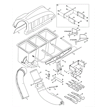 This upper chute assembly is part of a riding lawnmower bagging system. As the grass is mowed, it is pulled up and through the upper chute, where it is deposited in the grass bag. This is an OEM replacement part sourced directly from the manufacturer. If the upper chute has become damaged due to age or exposure to the elements, this part should be installed to repair the lawnmower.If the upper chute is damaged, grass clippings may not be fully bagged. Cracks in the chute can reduce efficiency, and some of the clippings may remain on the ground or eventually clog the tube. If the bag doesn't appear to be catching clippings after mowing, the upper chute assembly should be inspected. To repair the upper chute assembly, remove the machine's bagger and locate the damaged upper chute. Remove the damaged upper chute and dispose of it. Install the new upper chute and replace the mower bag. This upper chute assembly is a black plastic molded part that is sold individually. It is designed for use on lawnmowers manufactured by MTD and Craftsman.