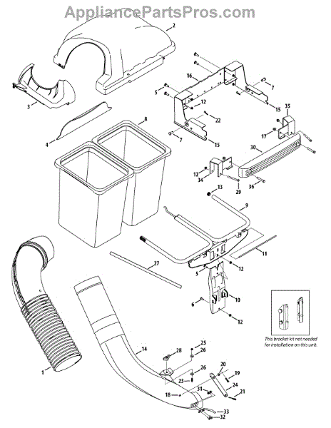 This is a bagger mounting bracket. The brackets and screws fasten a bag to the deck of a lawn mower, allowing grass clippings to be caught in the bag. If the bagger is falling off of the lawn mower, it could be time for a new mounting bracket assembly. Over time the screws can strip, or the metal could rust, causing the brackets to break. A new mounting bracket assembly is much more efficient than using a self-made system or tying the bag onto the lawn mower deck. Before beginning any installation, ensure the lawn mower is off and the brake is set. Wear gloves whenever possible to protect the hands. The mounting brackets are installed beneath the bagging system to the rear of the lawn mower. Screwdrivers and socket wrenches will be needed for installation.This product is a genuine OEM part and is sourced directly from the manufacturer. This product is compatible with MTD and Cub Cadet machines.