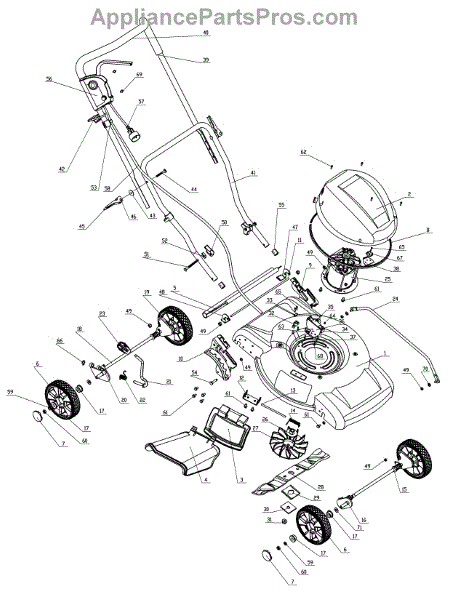 This is a replacement wheel for a walk-behind mower and works for any wheel (front or rear). The wheel helps with steering, control, and overall lawn mower function, and it is important to have all four of them on the machine. This wheel is plastic.Over time and because of wear and tear, a wheel can break or wear down. This is also dependent on frequency of use. For equipment used maybe once a week, replacing a wheel may never be a concern or a one-time repair. For machines used more frequently, it may need replacing more often. Also, the terrain and storage are factors influencing the replacement of wheels. Replacing a wheel is simple and requires only a socket set. First, unbolt the old wheels by loosening the bolt in the center of the wheel. Then, install the new wheel and re-install the bolt in the center. And tighten the bolt. This repair should take approximately fifteen minutes.This is a genuine OEM replacement wheel. This part works with limited MTD and Craftsman models. This part is sold separately.