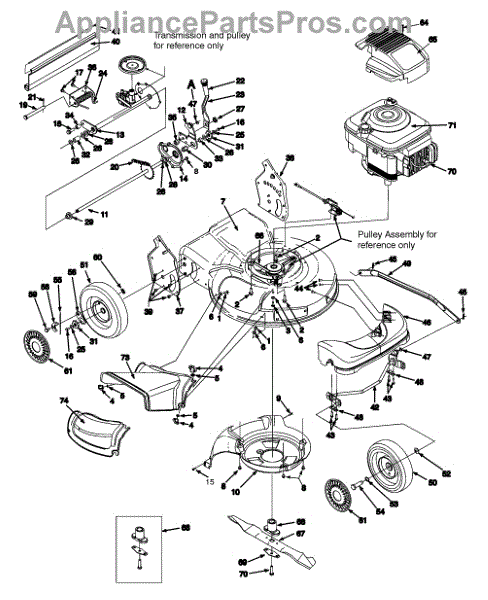 Drive belt transfers power from engine to wheels and deck on walk-behind mowers. Replace if worn, cracked, or slipping. Confirm fit with your model number.