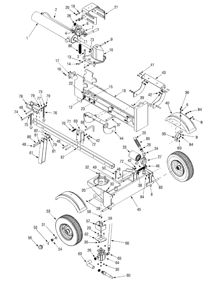 Hitch coupling assembly for log splitters. Connects your unit to a towing vehicle. Replace if the coupling is cracked, bent, rusted, or damaged.