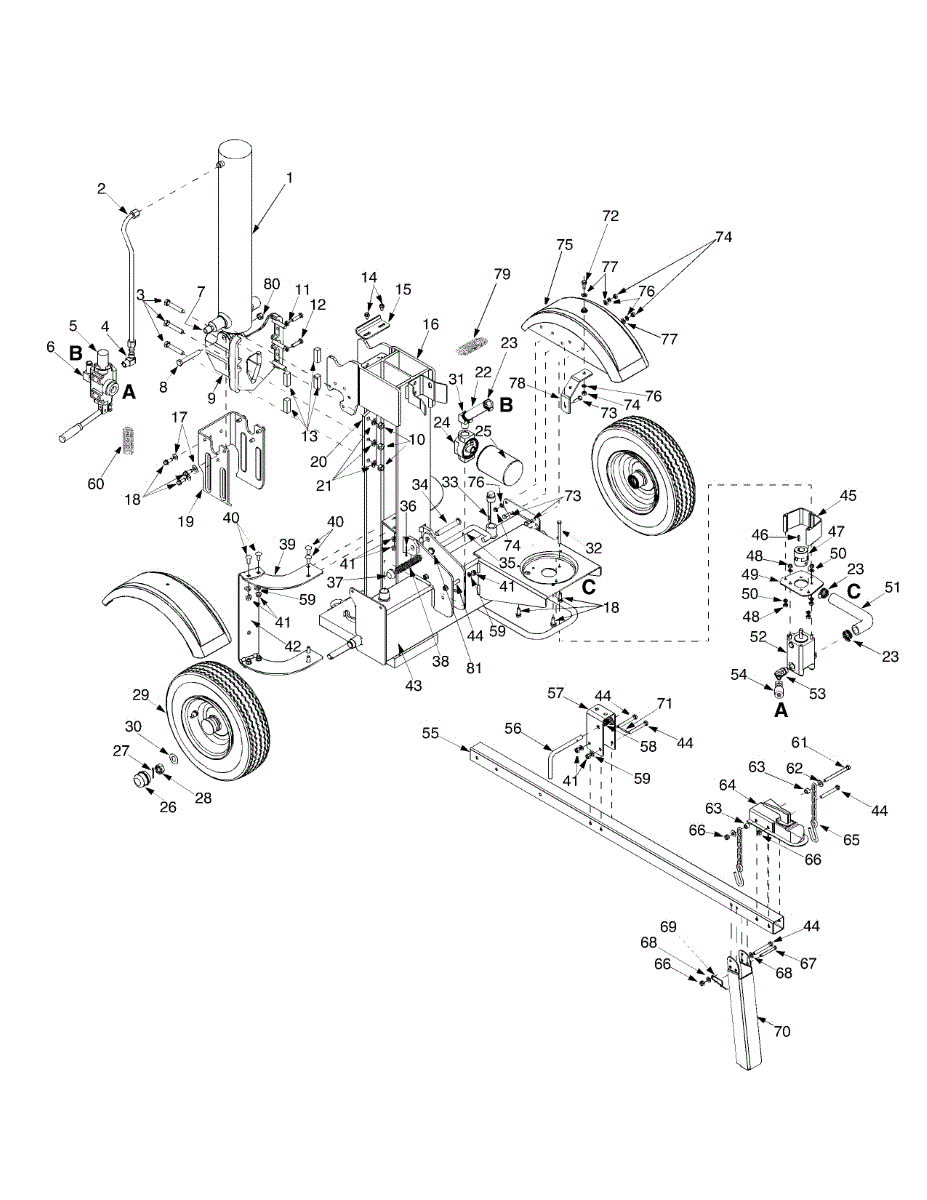Replacement fender for log splitters. Protects and covers the wheel from debris and impact. Replace if cracked, broken, or damaged from use or impact.