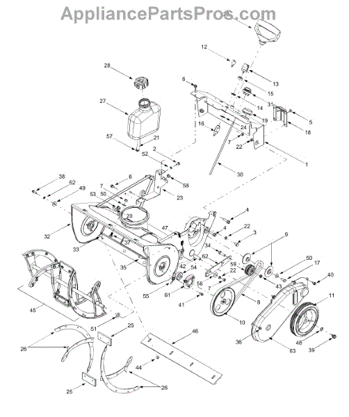 The shave plate, also called the scraper bar, is an important but often overlooked part of a snowblower. This thin metal strip sits at the bottom of the auger housing against the ground and gathers the snow the auger will expel through the chute. Made of hard plastic, the shave plate is the only part of the snowblower that actually touches the snow-covered ground without rolling. As durable as the shave plate is manufactured to be, it constantly comes into contact with unseen objects that pound, slice, and pit it. Eventually, the shave blade has to be replaced. To replace the blade, simply invert the blower, unscrew the old blade, attach the new blade, and put the blower right side up again. As long as the user is replacing the shave plate and has the machine upside down, this is an ideal time to check for damage to the wheels, the auger blades, driveshaft, and the condition of the shear pin. If this replacement is taking place in preparation for the coming winter, it might be a good time to replace the oil and oil filter as well. Be sure to use genuine OEM replacement parts that perfectly match the factory originals. This blade is compatible with snowblowers made by Yard-Man, Bolens, Yard Machines, Troy-Bilt, Craftsman, Ryobi, Cub Cadet, Huskee, Montgomery Wards, and Ryobi.