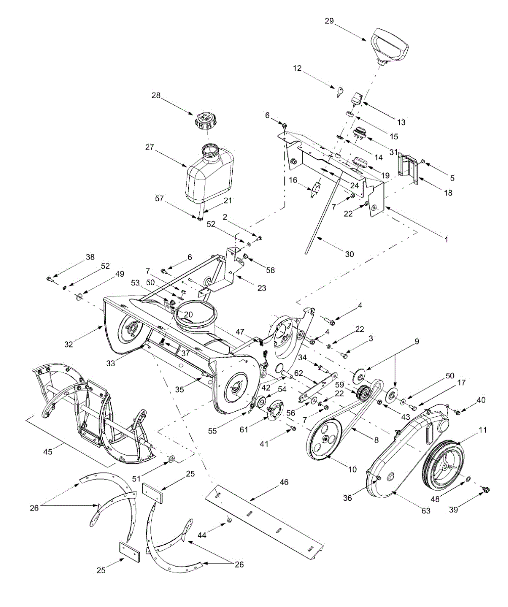 The drive V-belt, manufactured by Craftsman, is used in one- and two-stage snow blowers as well as tillers. This is a drive belt that connects the engine to the auger of the tiller or snowblower via a pulley at either end. This turns the blades of the tiller or the auger blades of the blower to expel snow. As a flexible, hardened rubber part connecting other moving parts, a V-belt is considered “replaceable,” meaning that users should expect to have to replace this part during normal use of the equipment. Signs that a drive V-belt may be going bad are a squealing sound when the blower's auger or the tiller's blades are first engaged, or if the auger is slow to engage and loses power during use. To replace the V-belt, the equipment must be secured and the spark plug caps removed. Tilt the device to reveal the location of the belt. It must detached from the engine pulley and the transmission pulley. When replacing the V-belt, before tightening the pulley, make sure all moving parts are properly aligned. This genuine OEM part is compatible with machines sold by MTD, Yard Man, Craftsman, and Yard Machine.