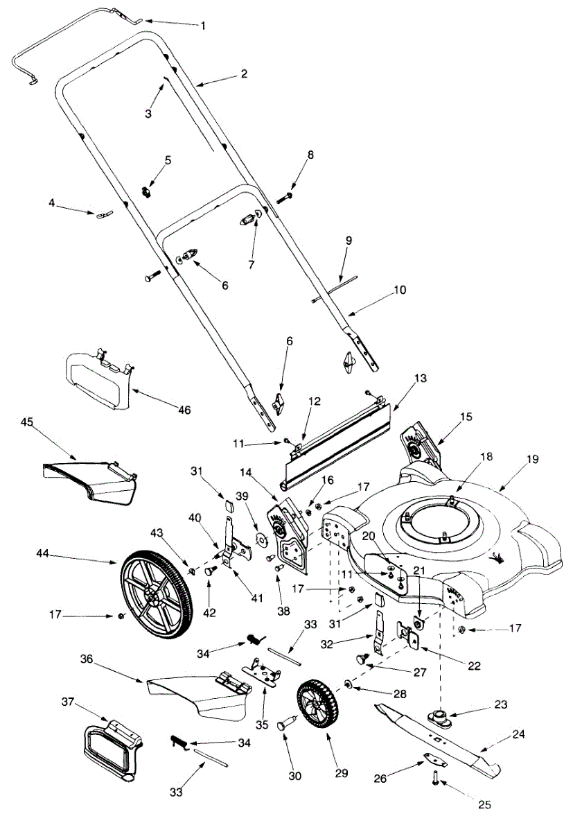 Replacement wheel for walk-behind lawn mowers and tillers. Mounts to the axle to support the deck and aid maneuverability. Replace if cracked or worn.