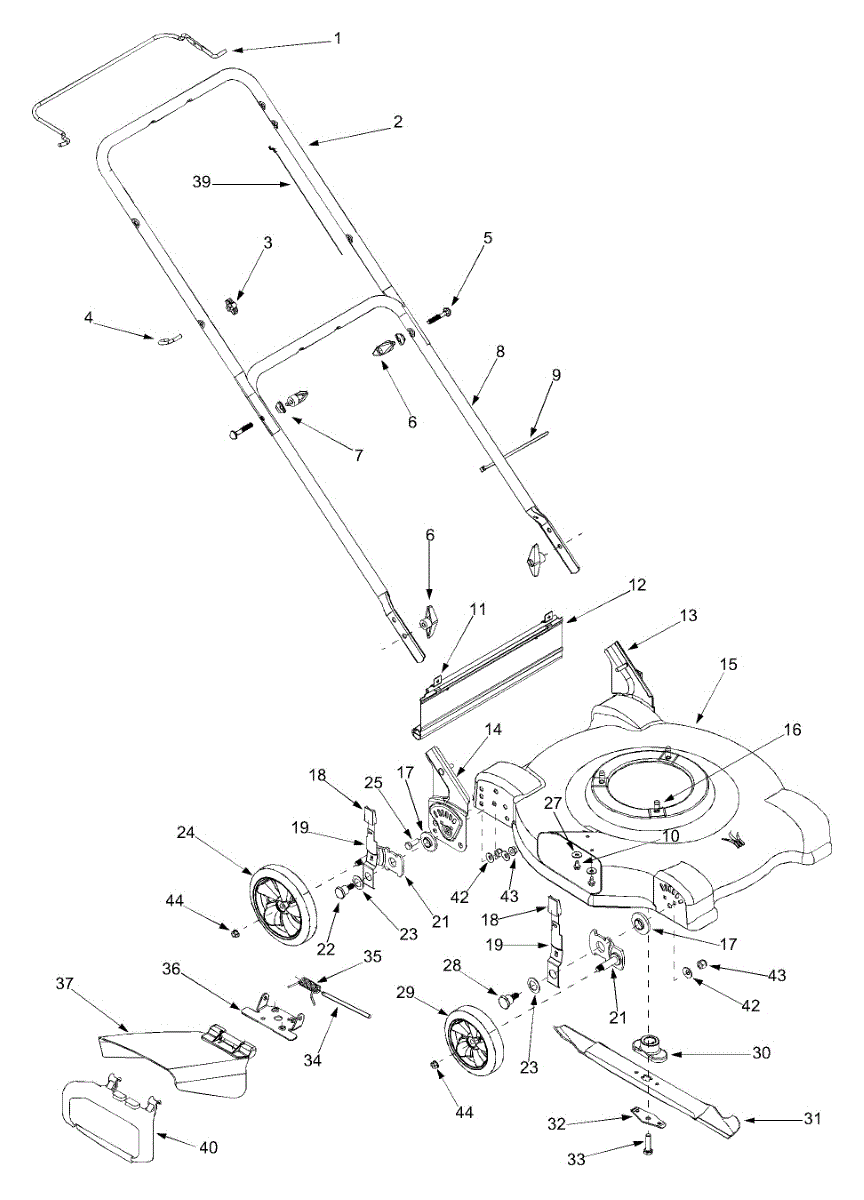 Replacement lower handle for walk-behind mowers. Installs at the base of the handle assembly. Replace if cracked, bent, broken, or damaged from impact.