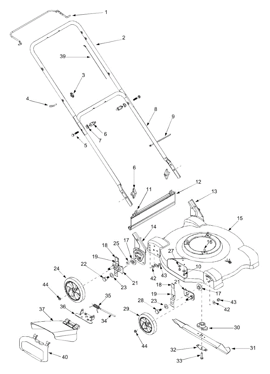 Replacement lower handle for walk-behind mowers. Installs at the base of the handle assembly. Replace if cracked, bent, broken, or damaged from impact.