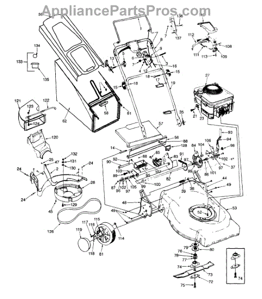 This is the front wheel assembly that is used by a large number of manufactures as the standard wheel for push mowers. This wheel is a tough, black rubber wheel fitted onto a sturdy white chassis. Since it is not a pneumatic wheel, there is no concern that it will roll over hidden debris and be damaged. Push wheels such as these often last the lifetime of a Lawn Mower. However, there are occasions when the housing of the mower is dropped and the wheel becomes warped or broken. It's also the case that, with constant use, the wheels can lose tread, making them harder to maneuver in tough mowing conditions. It has also been reported that the tires will wear and become smaller in circumference over time, meaning it will require more gasoline to mow the same amount of yard. The front wheels are easily replaced. After removing the plug cap and stabilizing the mower, simply use a socket wrench to remove the center bolt from the wheel. It's a good idea to use a dry lubricant like graphite on the axle before replacing it. This OEM guaranteed replacement part is compatible with Ryobi, Yard Machines, Troy-Bilt, Cub Cadet, Husky, Yard-Man, and MTD push mowers.