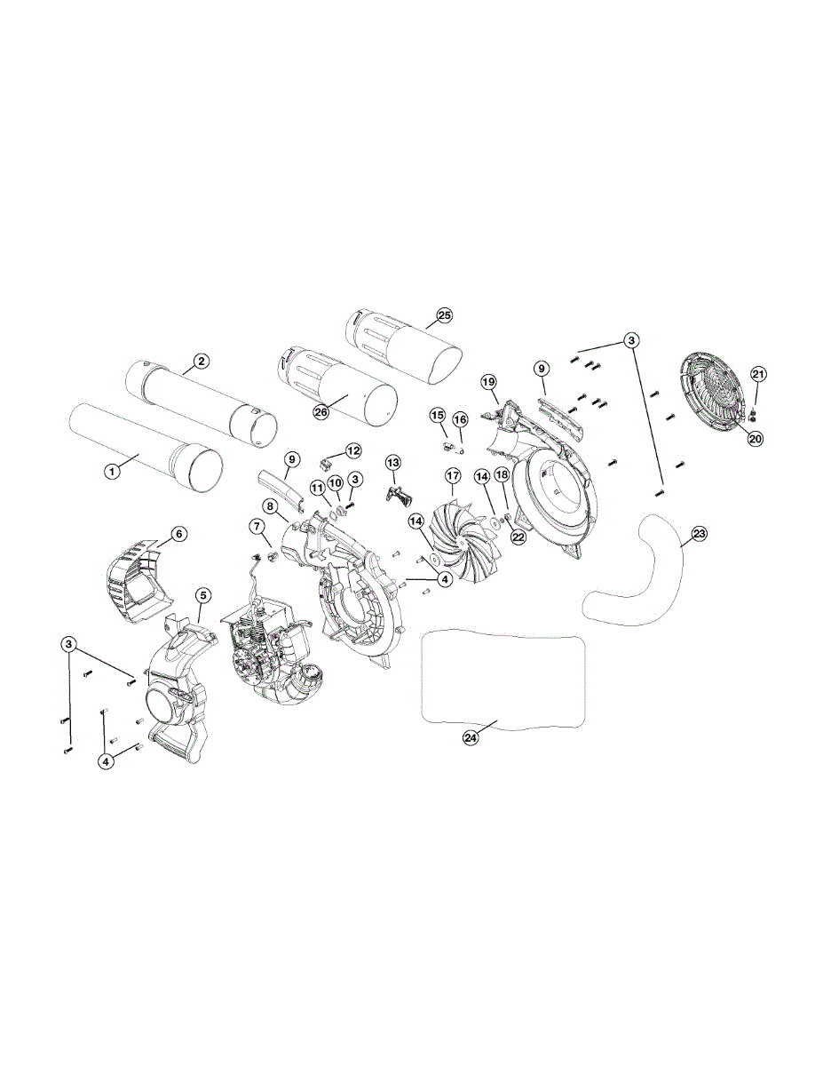 Lower tube for gas leaf blowers. Attaches to the blower unit to direct airflow. Replace if cracked, damaged, or missing to restore proper operation.