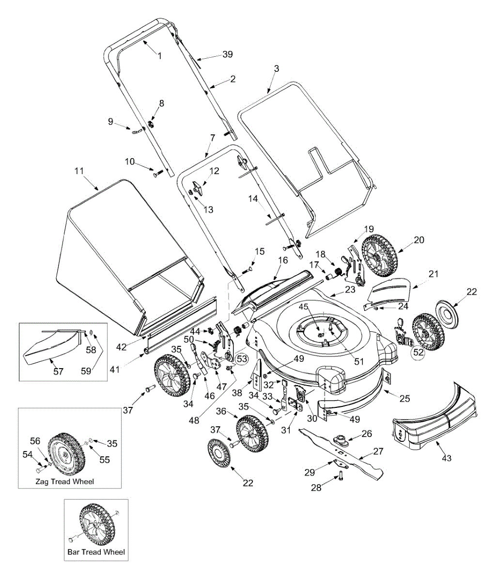 Lower handle for walk-behind lawn mowers. Replace your cracked, bent, or broken lower handle assembly to restore proper mower operation and control.