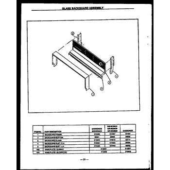 Parts for Modern Maid GBE24AAOPT: Glass Backguard Assembly (Gbe24cb) (Sbe24cb) (Gbe24cc) (Sbe24cc) (Gbe26cb) (Sbe26cb) (Gbe26eb) (Sbe26eb) (Gbc26ck) (Sbc26ck) Parts