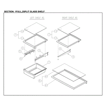 Parts for Kenmore 111.61202713 (11161202713, 111 61202713): 1Full, 2Split Glass Shelf Parts
