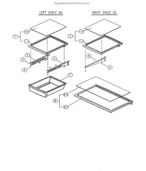 Parts for Kenmore 111.69339810 (11169339810, 111 69339810): 1Full, 2Split, Glass Shelf Parts