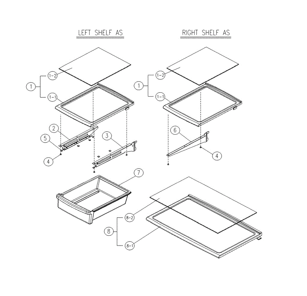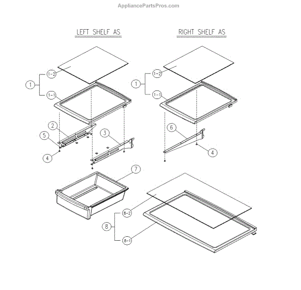 Parts for Kenmore 111.60519911 (11160519911, 111 60519911): Glass Shelves Parts