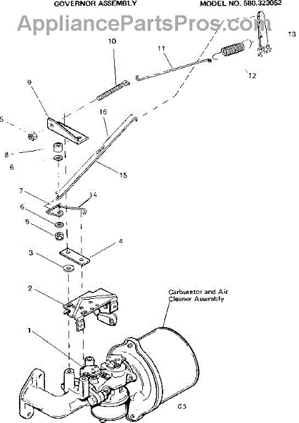 Parts for Craftsman 580323052: Governor Assembly Parts