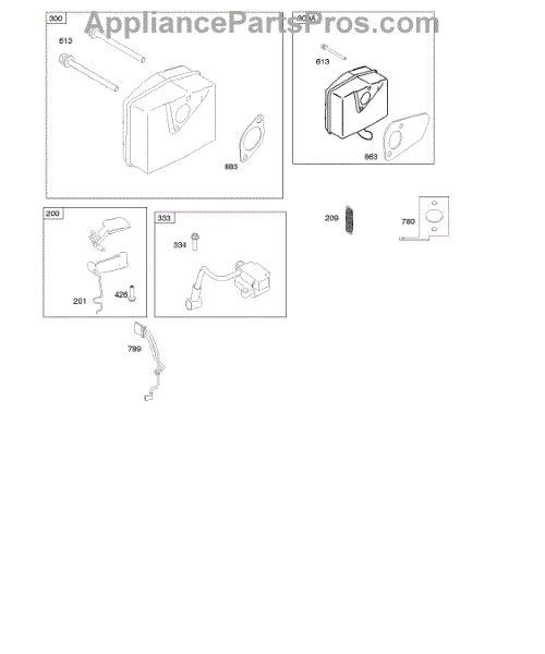 Parts for Briggs & Stratton 084333-0197-E2: Governor Spring, Ignition, Muffler Parts
