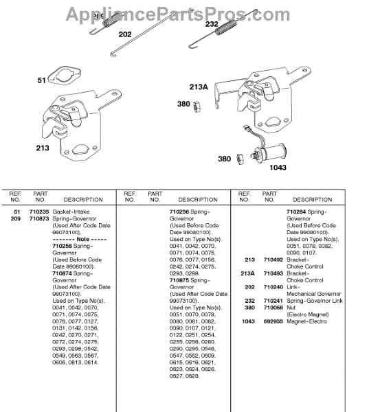 Parts for Briggs & Stratton 185432-0038-01: Governor Springs, Choke Control Brackets Parts