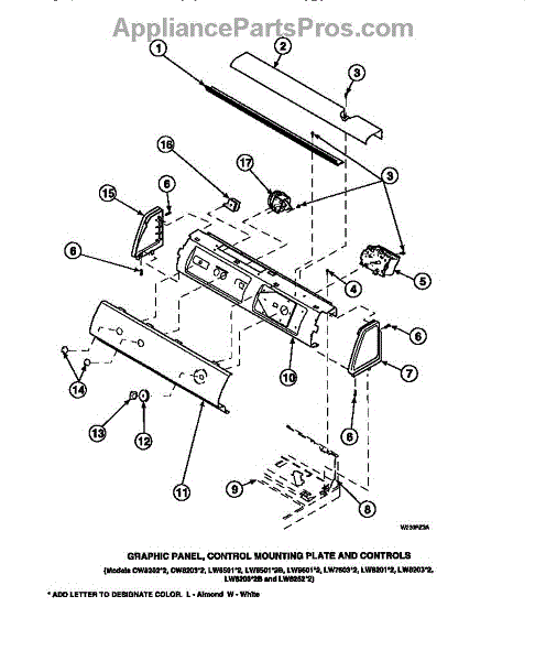 Parts for Amana LW6501W2B/PLW6501W2A: Graphic Panel, Control Mounting Plate And Controls (Cw4202w2 / Pcw4202w2a) (Cw8202w2 / Pcw8202w2a) (Cw8203w2 / Pcw8203w2a) (Cw8413w2 / Pcw8413w2a) (Lw2001w2 / Plw2001w2a) (Lw2501l2 / Plw2501l2a) (Lw2501w2 / Plw2501w2a) (Lw3502l2 / Plw3502l2a) (Lw3502w2 / Plw3502w2a) (Lw350 Parts