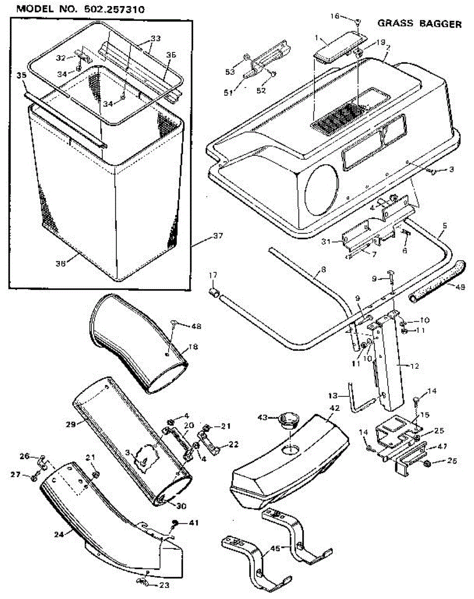 Parts for Craftsman 502257310: Grass Bagger Parts
