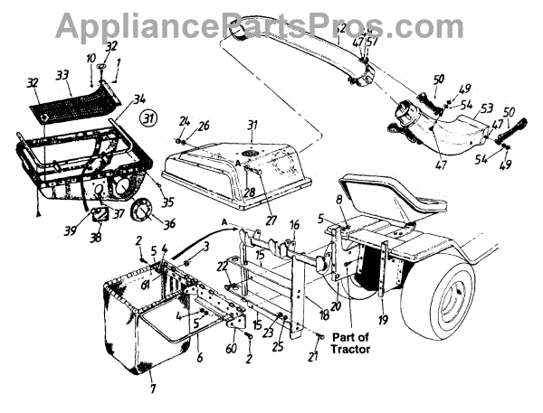 Replacement lower chute for lawn tractors. Channels grass clippings from cutting deck to discharge area. Replaces cracked, broken, or missing chutes.