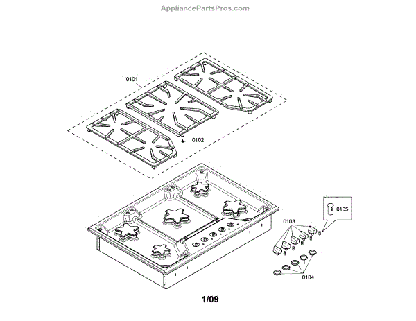 This grate foot assembly installs on the underside of a gas cooktop or range grate to cushion and stabilize it. Replacing worn or missing feet helps protect the surface and keeps cookware level while you cook.