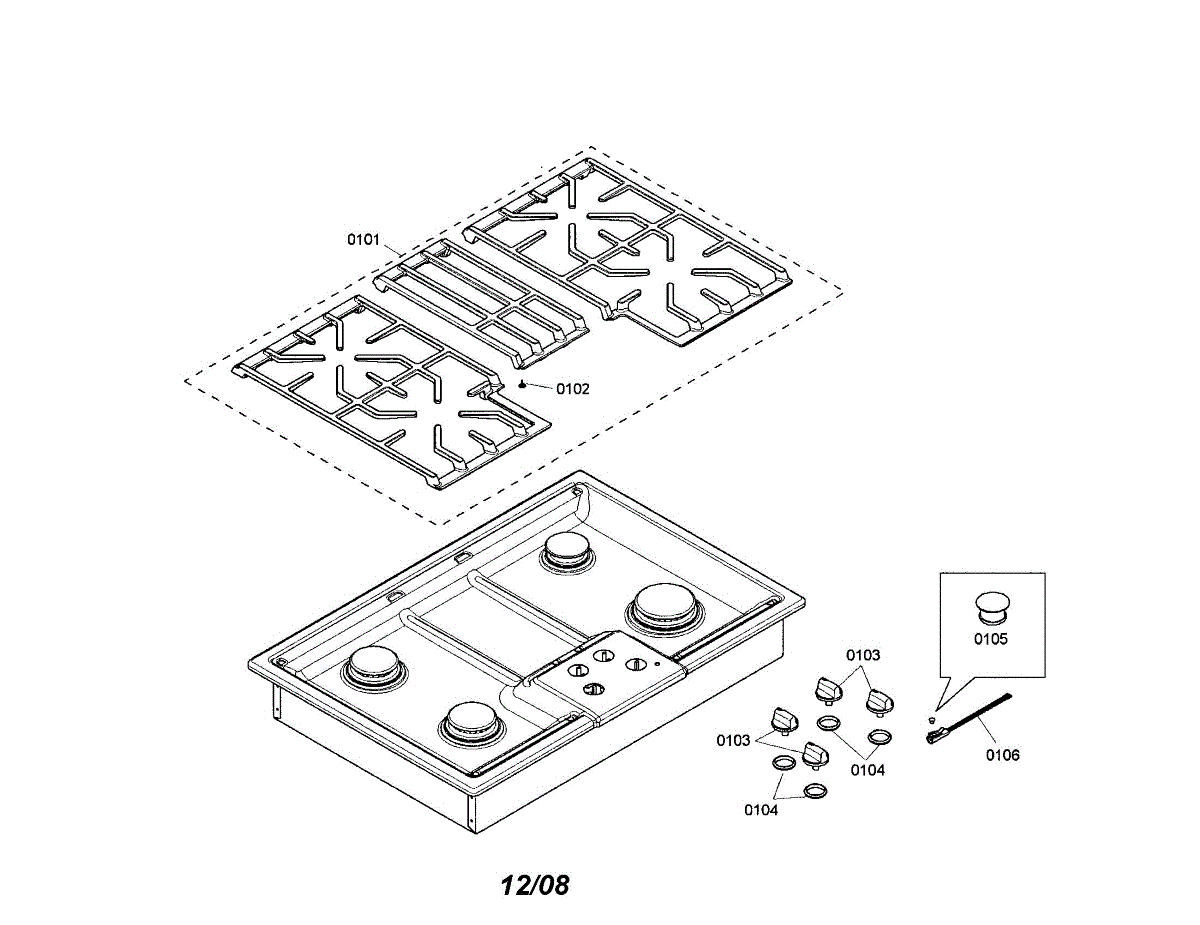 Grill grid for gas cooktops. Sits over the burner to support pots and pans during cooking. Replace if cracked, warped, or damaged for safe operation.
