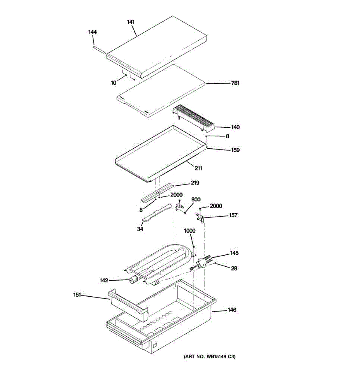 Griddle plate assembly for gas ranges and cooktops. Replaces cracked, warped, or damaged griddle surfaces. Installs on cooktop for flat cooking.