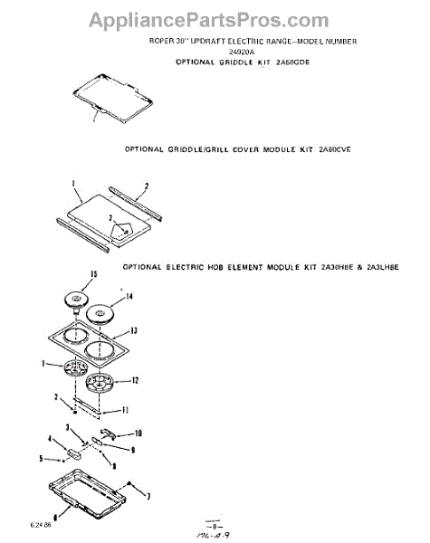 Parts for Roper 2492X0A: 07 - Griddle , Griddle / Grill Cover Parts