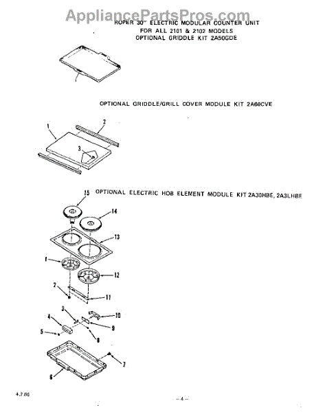 Parts for Roper 2101W1E: 04 - Griddle Kit, Griddle / Grill Cover Parts