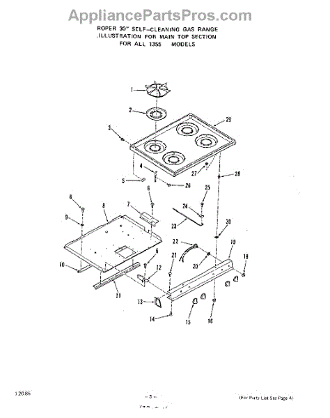 Parts for Roper 1355W0A: 03 - Griddle Parts