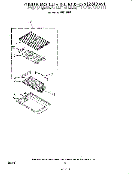 Parts for Whirlpool RHE396PP: 08 - Griddle Rck 884 (261950) , Cutting Parts