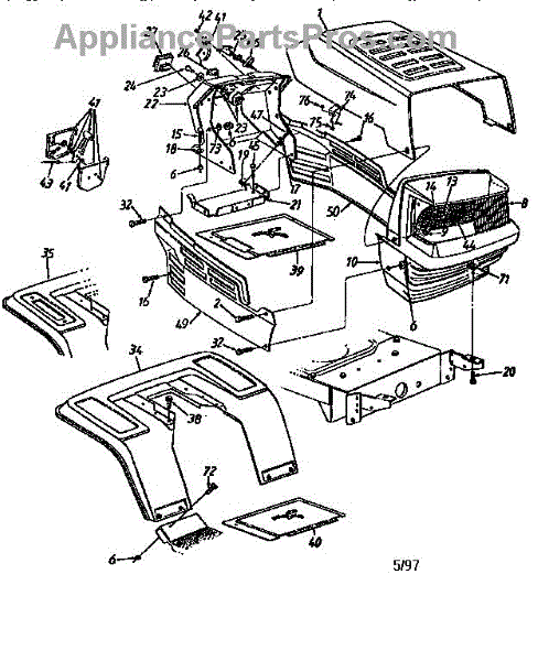 This grille is an authentic OEM replacement part sourced directly from the manufacturer for use on lawnmowers and lawn tractors. The grille is primarily part of the cosmetic appearance of the lawnmower or lawn tractor. However, on some models, the grille may protect the headlight or other mechanical parts behind it. If the grille becomes damaged, it should be removed and replaced. Before removing the grille, make sure the engine is cool. Remove the key from the ignition and take the spark plug out for safety. Wear safety gloves and safety goggles when working on the lawnmower. Remove the screws holding the grille in place. Take the damaged grille off and line the new grille up with the holes. Insert the screws from the original grille and tighten. Put the spark plug back in the lawnmower.This grilled is a high-quality, black, plastic part that is sold individually. It does not come with the screws for attaching it to the machine. This grille is designed for lawnmowers and lawn tractors made by MTD, Yard Machine, Ryobi, and Husky.