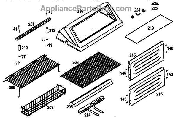 Parts for Kenmore 415.15644 (41515644, 415 15644): Grill Top And Cooking Grate Parts