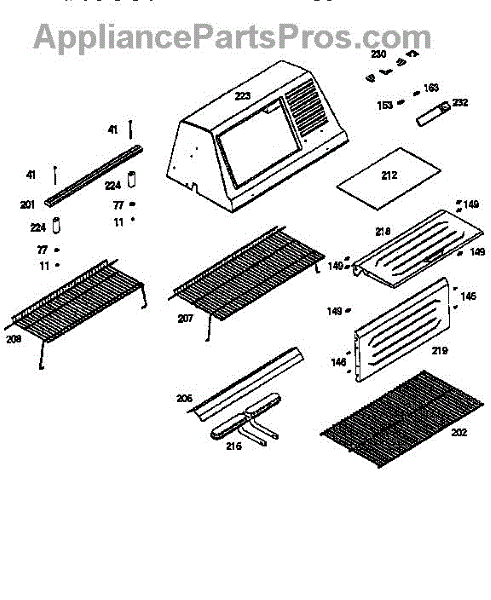 Parts for Kenmore 415.15645 (41515645, 415 15645): Grill Top And Cooking Grate Parts