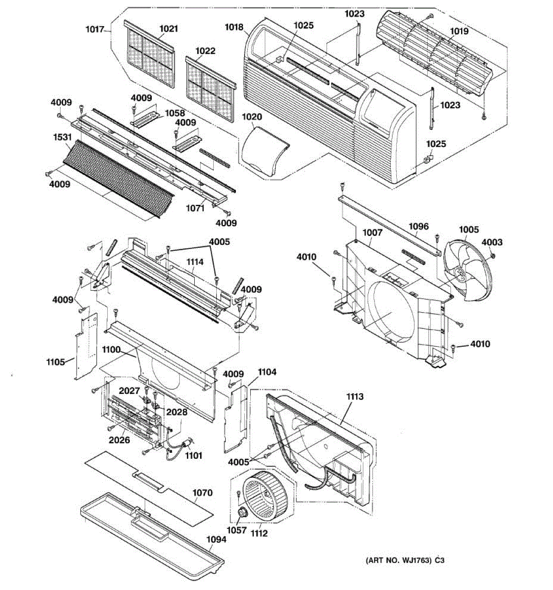 Parts for Ge AZ32H12D5BM2: 01 - Grille & Air Moving Parts