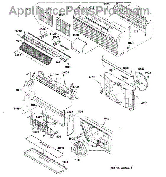 Parts for Ge AZ32H12E4BM1: 01 - Grille & Air Moving Parts