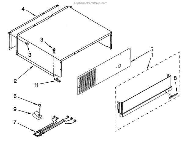 This replacement cover-unit restores the appliance's outer cabinet appearance and protects internal components from dust and debris. It provides a clean finished look and helps keep controls and wiring shielded from accidental contact. What it does