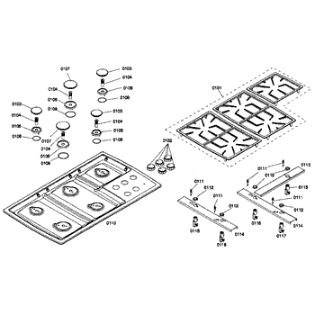 • Remove burner grates and caps; replace base using basic hand tools—do not force parts.