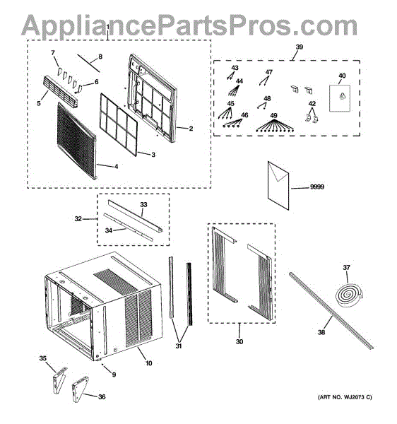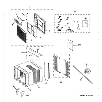 This is the air filter assembly for select GE room air conditioners. It traps dust and lint before they reach the evaporator coil, helping maintain airflow and cooling performance.