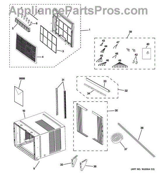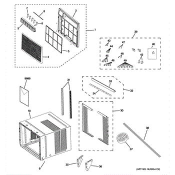 This is the air filter assembly for select GE room air conditioners. It traps dust and lint before they reach the evaporator coil, helping maintain airflow and cooling performance.