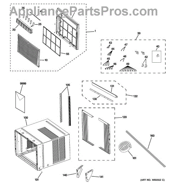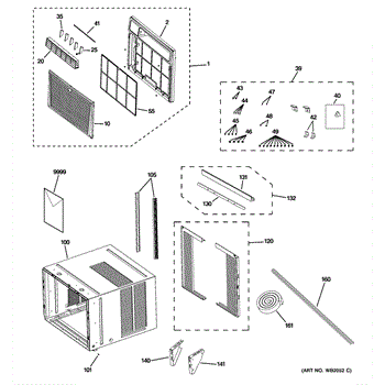 This is the air filter assembly for select GE room air conditioners. It traps dust and lint before they reach the evaporator coil, helping maintain airflow and cooling performance.