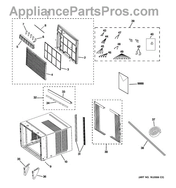 This is the air filter assembly for select GE room air conditioners. It traps dust and lint before they reach the evaporator coil, helping maintain airflow and cooling performance.