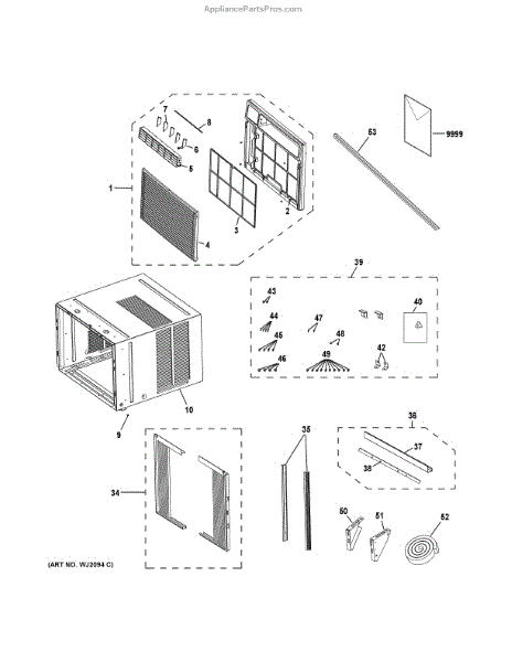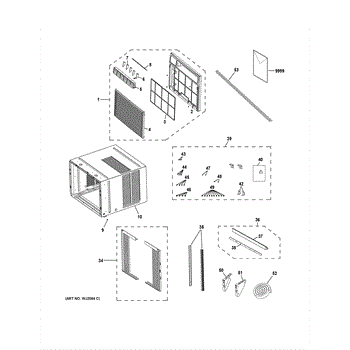 This is the air filter assembly for select GE room air conditioners. It traps dust and lint before they reach the evaporator coil, helping maintain airflow and cooling performance.